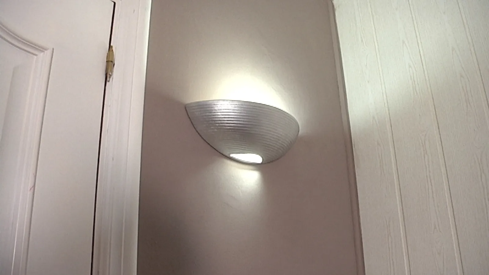 El aplique cerámico de esta habitación está pintado del mismo tono que la pared, el cual queda perfectamente integrado en el entorno.