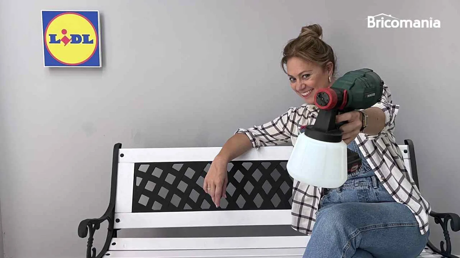 En este caso, trabajaremos con un banco de madera y hierro, y utilizaremos una pistola pulverizadora de 20V de la marca PARKSIDE de LIDL. ¡Verás lo sencillo que es!