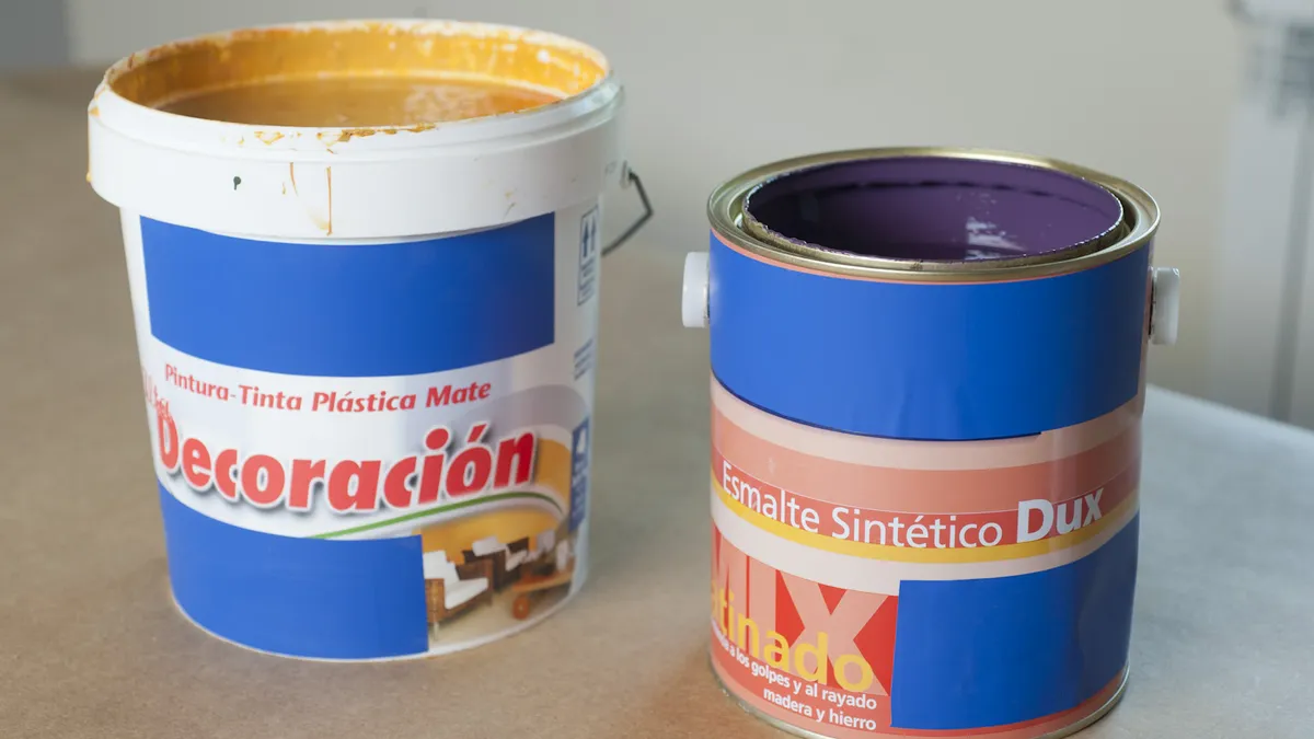 La diferencia fundamental entre ellas es la forma de diluirlas: la pintura sintética se diluye con disolvente, mientras que la plástica se mezcla con agua.