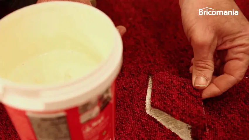 Con la superficie limpia, aplica cola acrílica en el hueco y coloca el nuevo trozo de moqueta en su lugar. Presiona durante unos minutos para asegurar una buena adhesión.