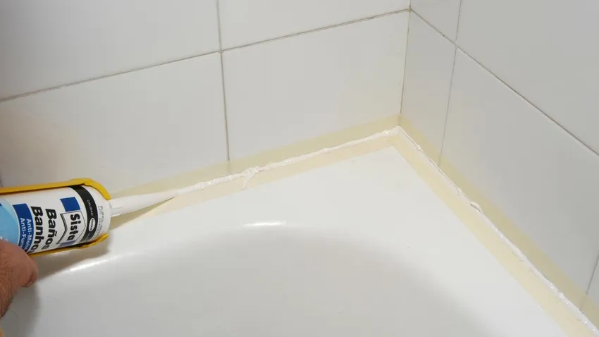 Aplica silicona ácida, apta para el sellado de materiales no porosos, con fungicida y específica para el baño.
