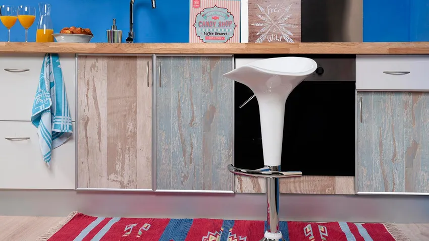 Os proponemos una opción para renovar los muebles de la cocina sin hacer obras. Se trata de revestir las puertas con unas lamas de PVC que imitan a la madera y le darán modernidad a las puertas.