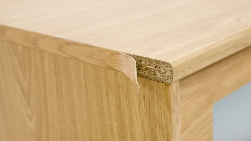 Paso a paso para reparar con cinta de cantear una cajonera o balda:
