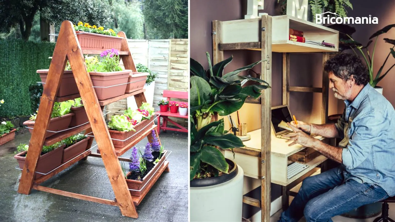 Reutilizando una escalera vieja y colocándole algunas baldas con tableros de madera de pino conseguiremos una pequeña jardinera o huerto. ¿Os animáis a hacer una escalera para huerto?