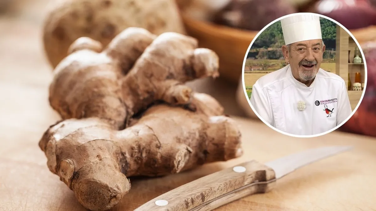 Karlos Arguiñano utiliza un truco sencillo pero efectivo para pelar el jengibre sin esfuerzo: usar una cuchara en lugar de un cuchillo o pelador. 'Es la mejor forma de hacerlo', afirma nuestro chef. Este método es rápido, seguro y permite solo quitar la piel fina evitando desperdiciar la pulpa del jengibre.