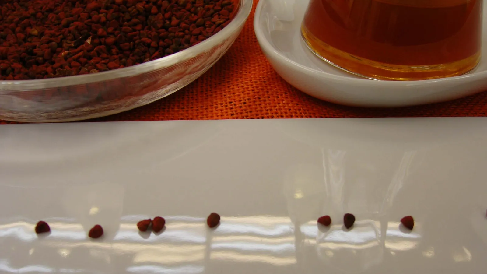 Es un condimento muy habitual en las recetas de muchos países de América. El achiote lo utilizamos para aromatizar y dar color a la leche con la que luego hacemos el helado. Nosotros lo estamos empleando sólo para una preparación dulce: Helado de chocolate blanco con achiote.