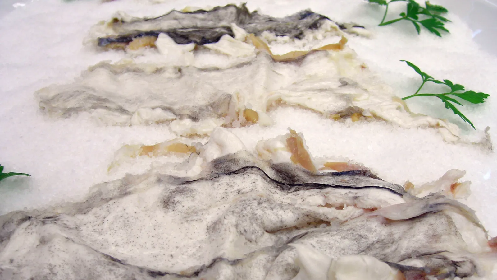 Y el tema que nos ocupa: las tripas, mal llamadas así, ya que en realidad es la vejiga natatoria del animal y una de las partes más valoradas del bacalao.