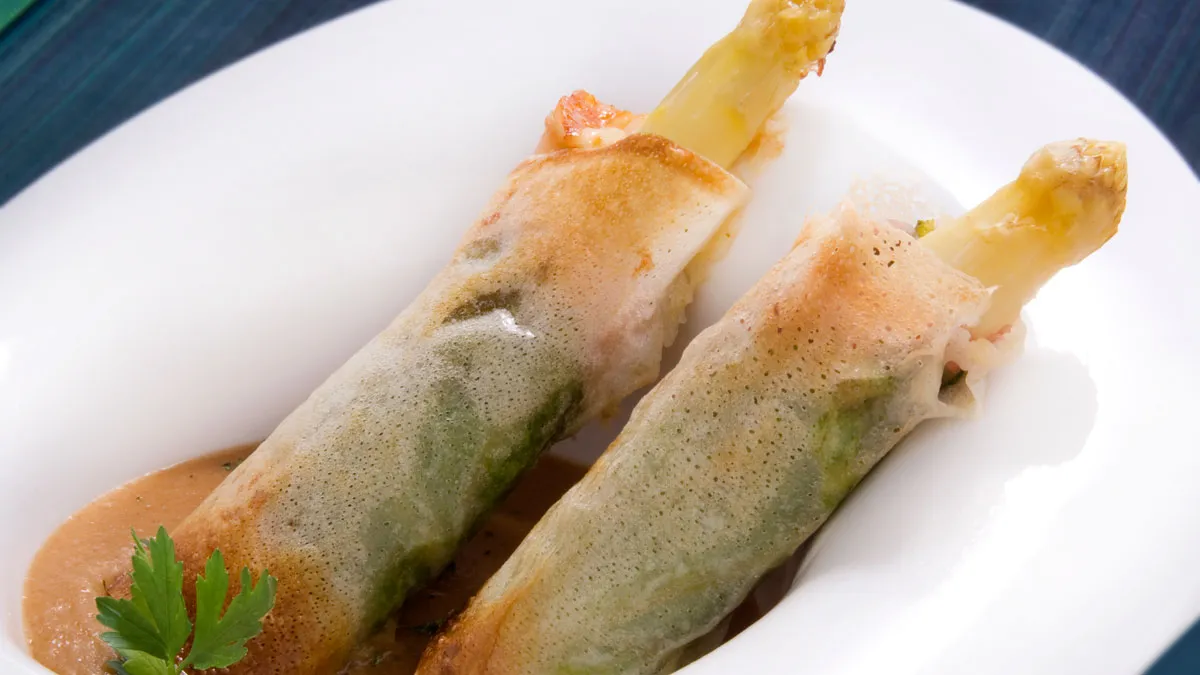 Karlos Arguiñano elabora una receta de brick de jamón, queso y espárragos acompañado de una deliciosa crema de ajo.