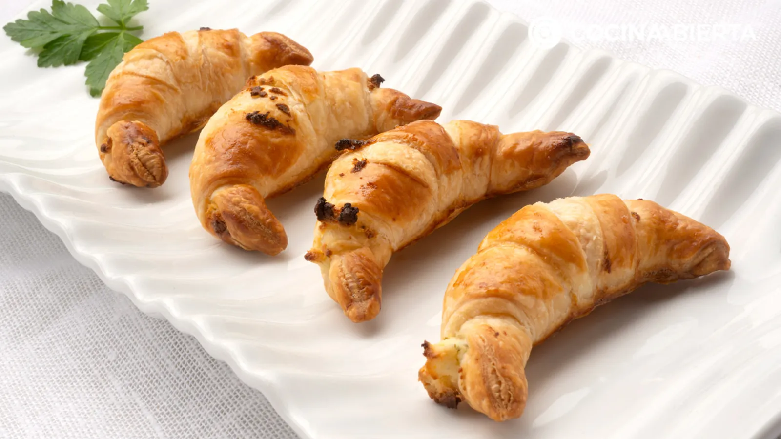 Sirve y adorna con unas hojas de perejil y ¡sorprende con unos apetitosos cruasanes de queso con finas hierbas!