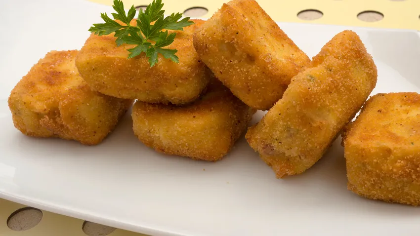 Croquetas cuadradas de pavo y huevo