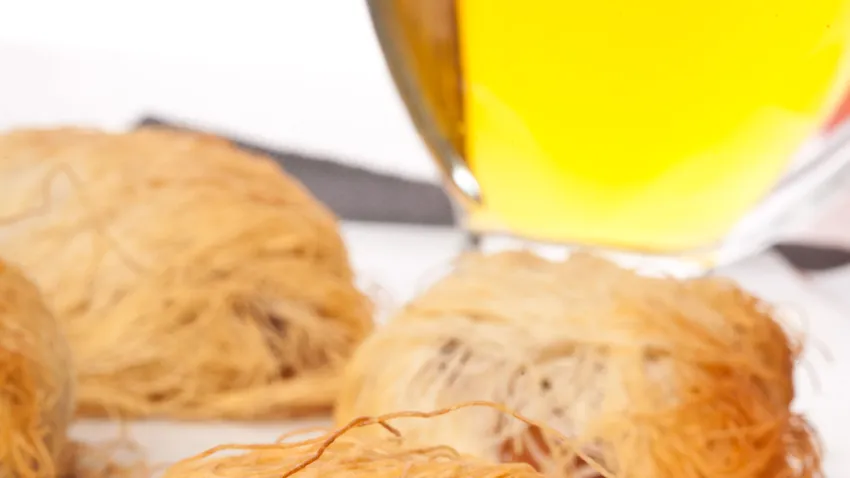 Corta en dados el requesón y los dátiles y envuelve con la pasta kataifi. SI utilizas pasta filo, haz paquetitos con la pasta e introduce en cada uno un dado de requesón y uno de pasta de dátiles. Introduce en el horno a 180ºC durante unos 15- 20 minutos.
