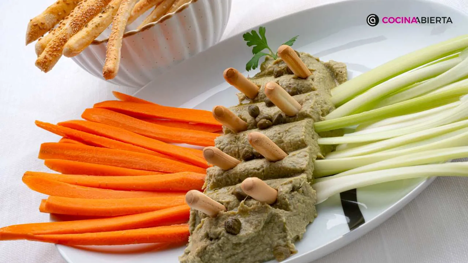 Para acompañarlo, propone crudités, bastones de verduras crudas como apio y zanahoria.