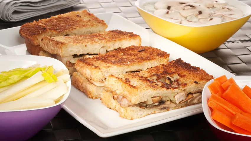 Sandwich de champiñones con gorgonzola en sandwichera