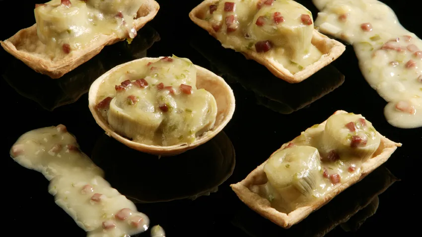 Receta de tartaletas de alcachofas con velouté de jamón de la mano de Karlos Arguiñano.
