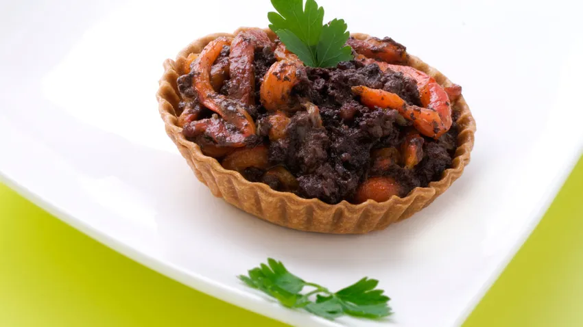 Elaboración de la receta de Tartaletas con morcilla y morrones: