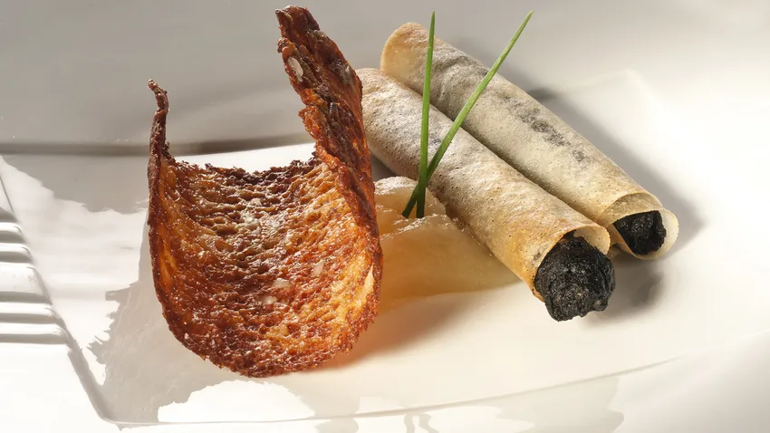 Os enseñamos cómo preparar una receta de tejas de queso y cigarrillos de morcilla del cocinero Bruno Oteiza.