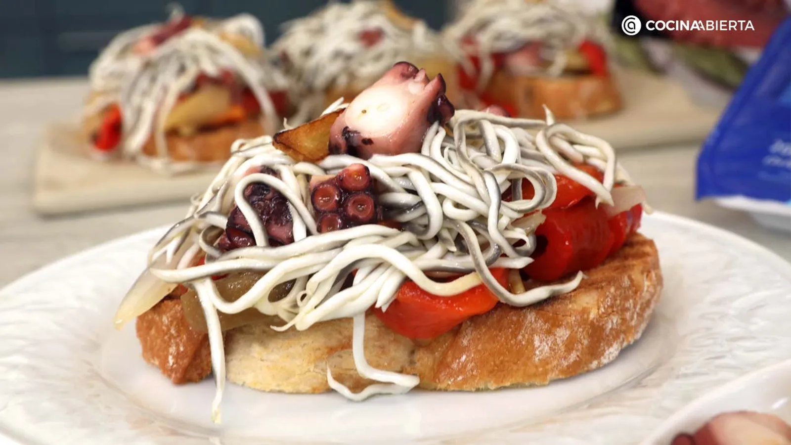 En Cocina Abierta preparamos un sencillo y riquísimo aperitivo: Tosta con pulpo, escalivada y gulas, una propuesta de picoteo ideal para servir y degustar antes de las comidas con familiares y amigos en cualquier época del año ¡será todo un éxito ya que el resultado es espectacular!