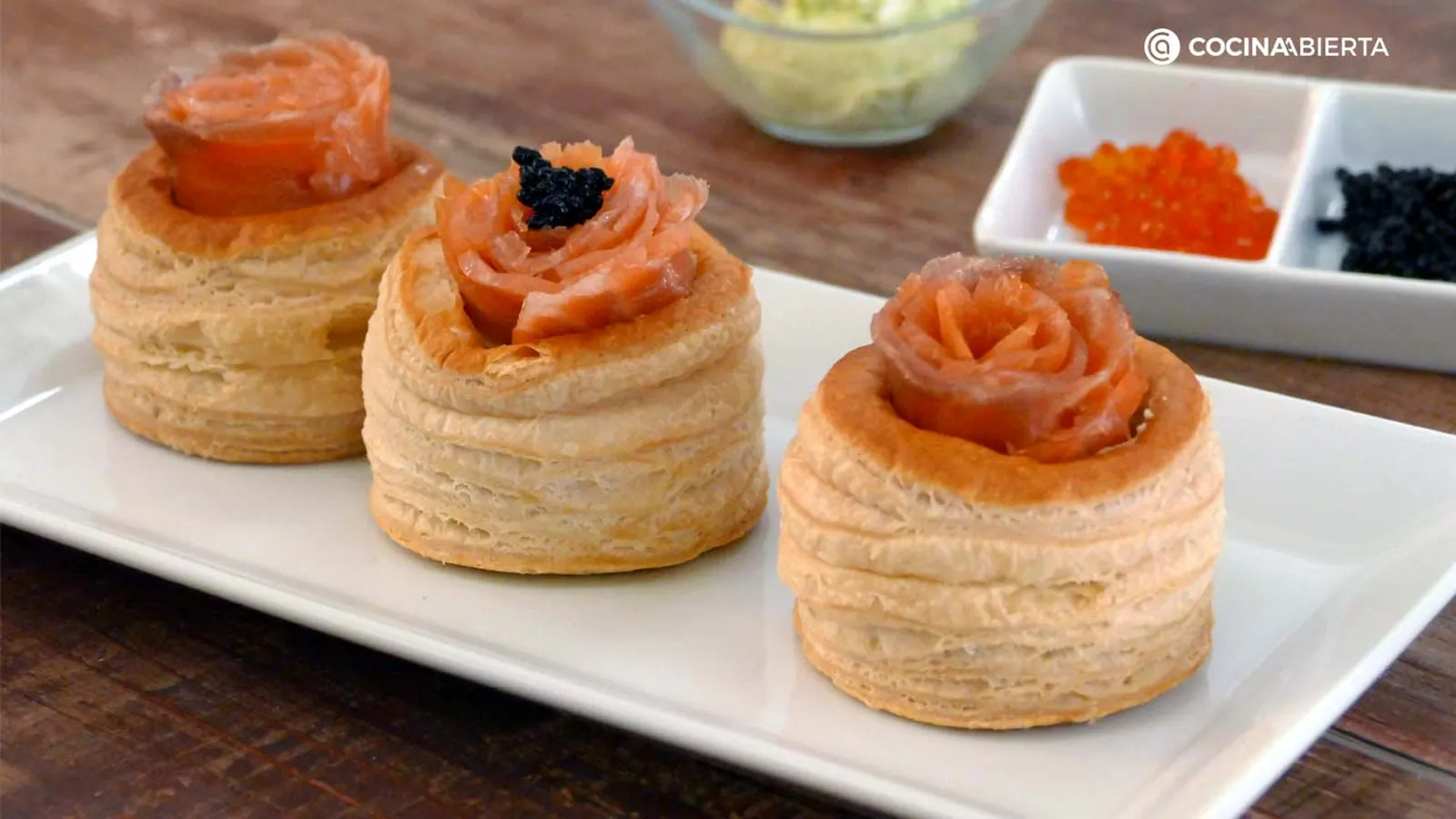Sirve los volovanes de rosas de salmón con aguacate en Navidad y sorprende a todos con una receta muy original. Puedes decorarlos con el sucedáneo de caviar negro o las huevas de salmón Keta de Skandia. ¡Tendrá un toque único!