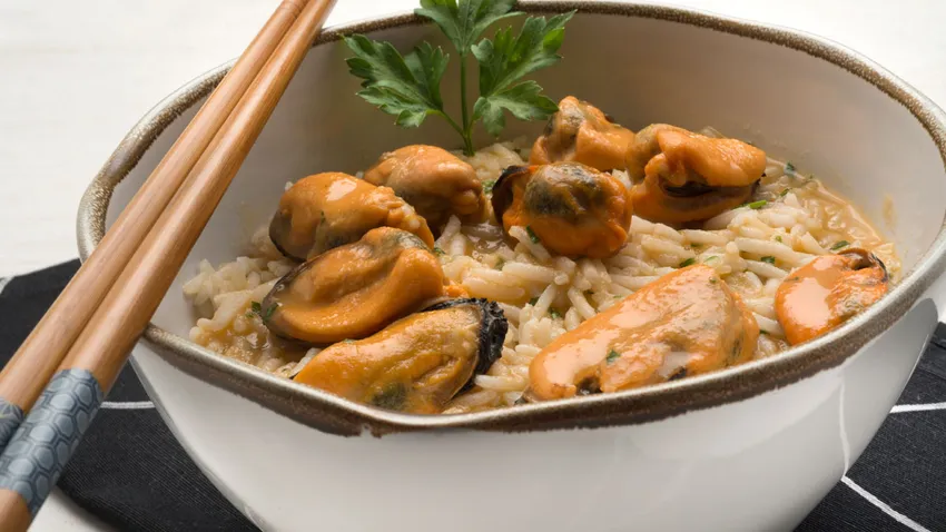 Elaboración de la receta de Arroz basmati con mejillones picantes: