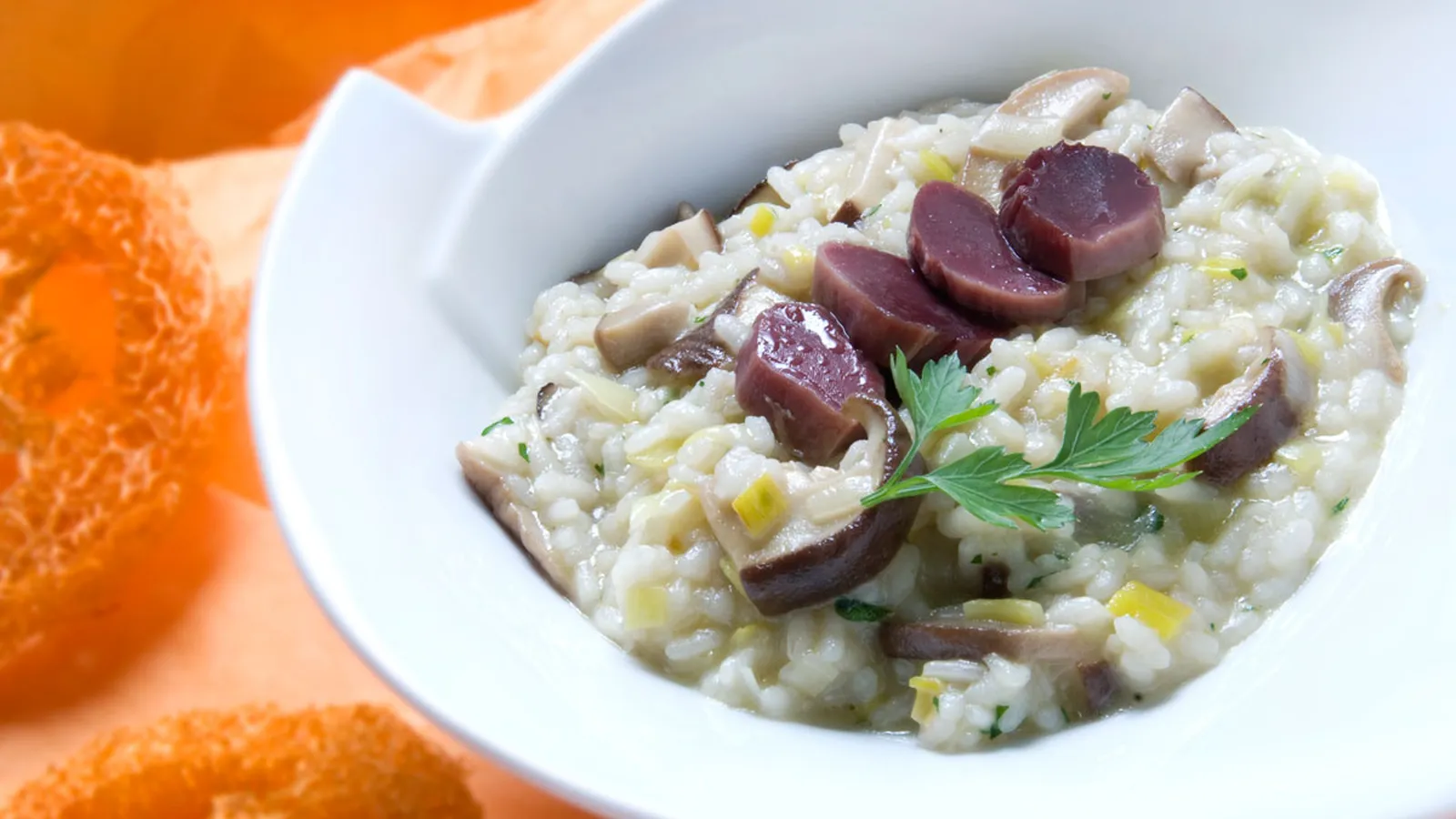 Karlos Arguiñano nos enseña a preparar un arroz caldoso con mollejas, setas y queso, una receta llena de sabor y nutritiva que incluye alimentos de varios grupos de la pirámide alimenticia, como cereales, hortalizas, lácteos y carne.
