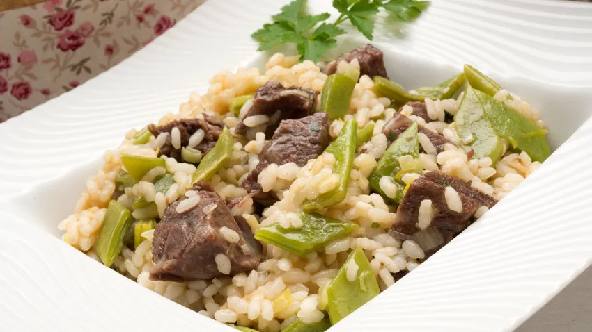 Receta de Karlos Arguiñano de arroz con carrilleras y caldo de verduras, un plato completo elaborado en la paella.