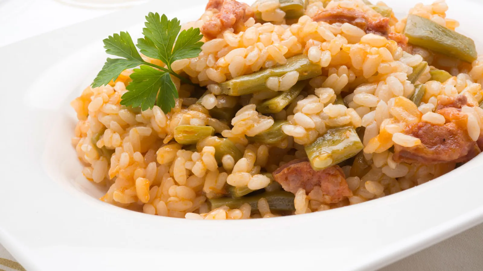 Receta de Karlos Arguiñano de arroz acompañado de chorizo y judías verdes, un plato nutritivo y fácil de preparar.