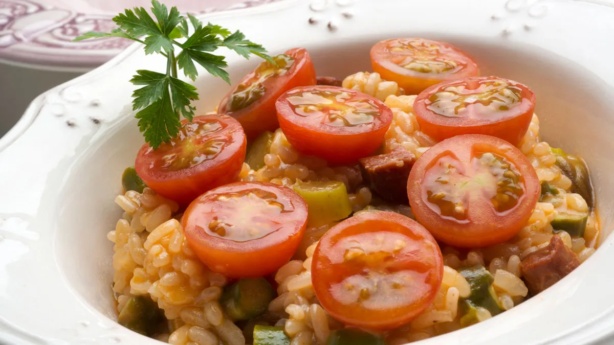 Karlos Arguiñano prepara una receta de arroz con espárragos verdes, chorizo y tomates cherry, un plato único nutritivo y muy sencillo de preparar.