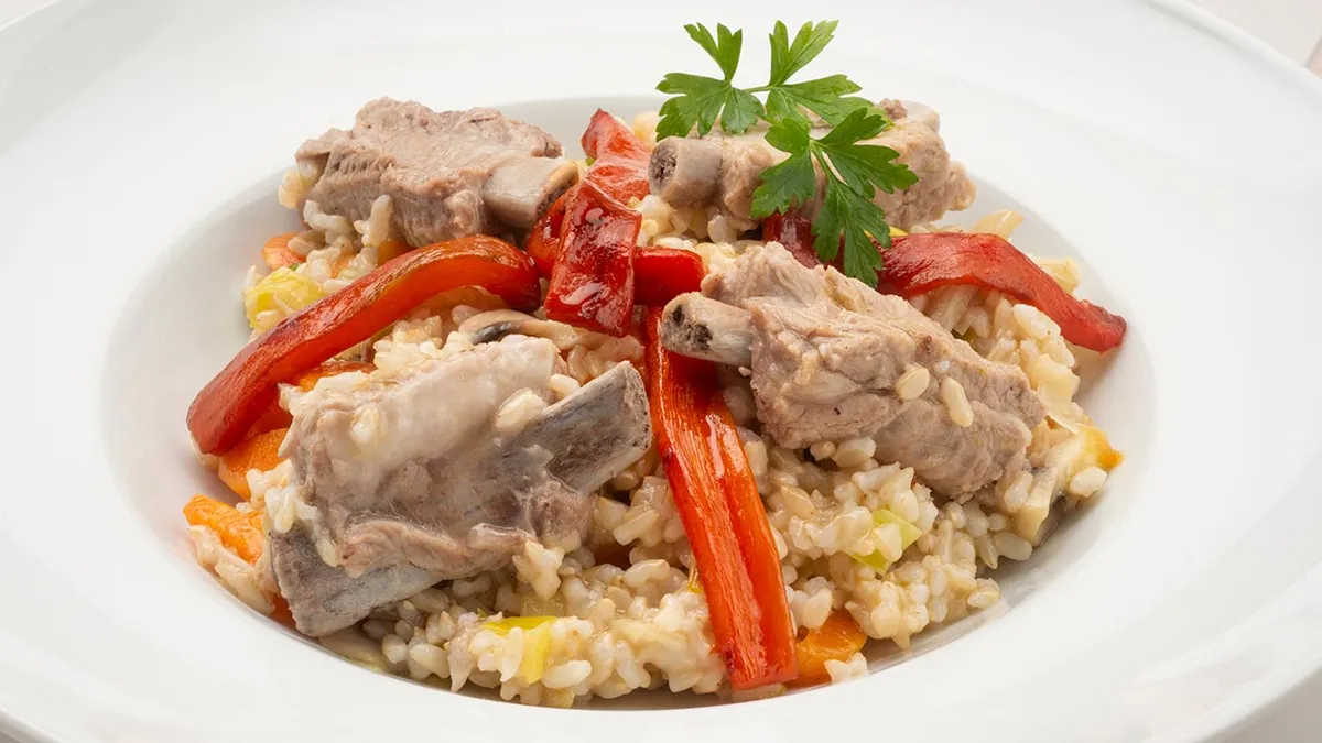 Arroz integral con costilla al horno