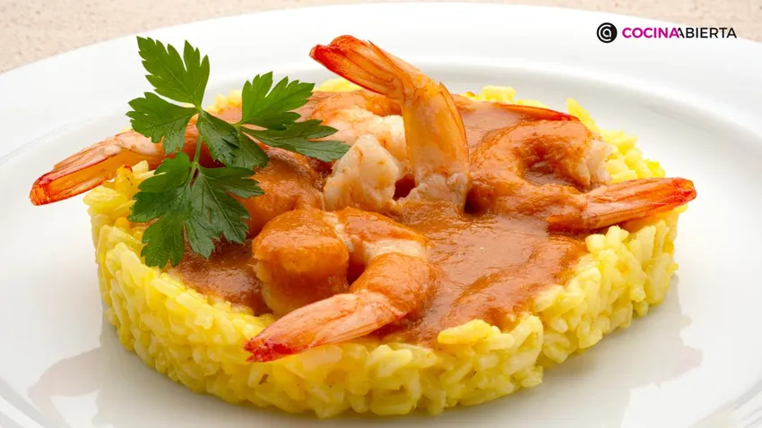 El arroz de esta receta incluye azafrán, con un resultado vistoso y apetecible. Luego, se saltean los langostinos en una sartén, y finalmente, solo queda servir y disfrutar.