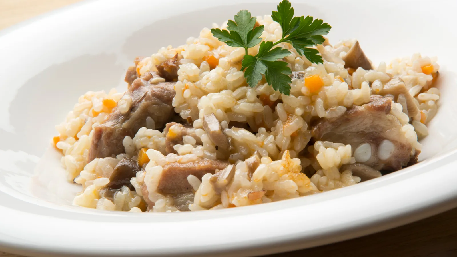 Receta de Karlos Arguiñano de arroz meloso con costilla de cerdo y setas, un plato nutritivo y muy completo.