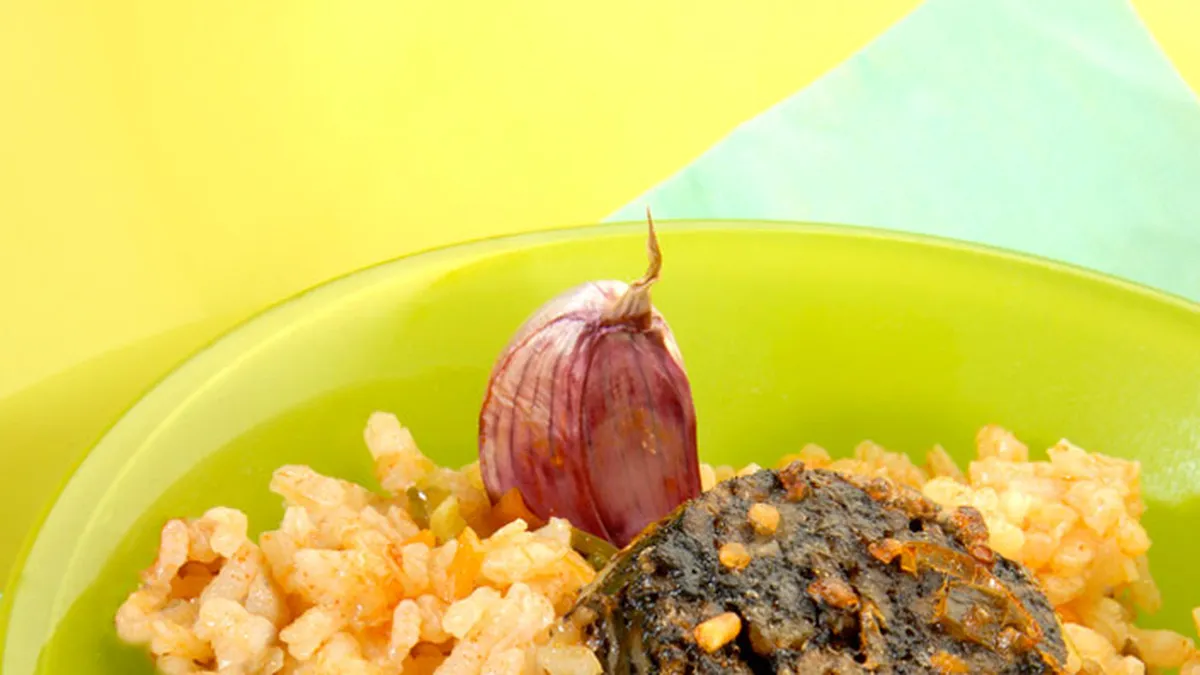Elaboración de la receta de arroz con morcilla y mahonesa de ajo