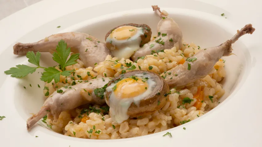 Arroz con muslos de codorniz