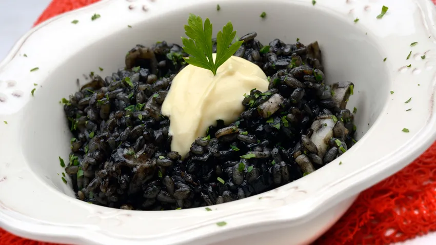 Arroz negro con calamares y ali-oli