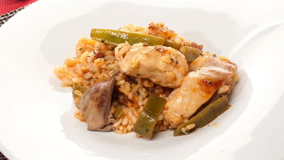 Arroz con pollo y judías verdes