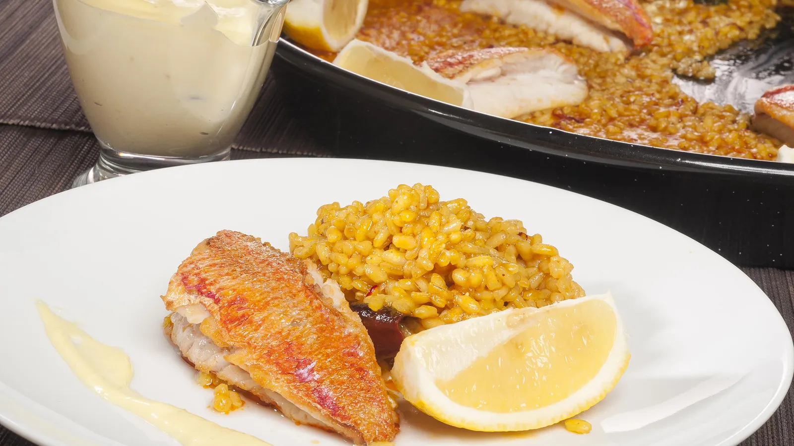 Bruno Oteiza prepara un plato de lomos de salmonete fritos acompañados de arroz al azafrán y mahonesa casera de ajo.