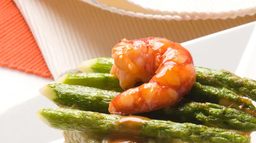 Karlos Arguiñano prepara una receta de arroz con caldo de espinacas acompañado de langostinos y espárragos.