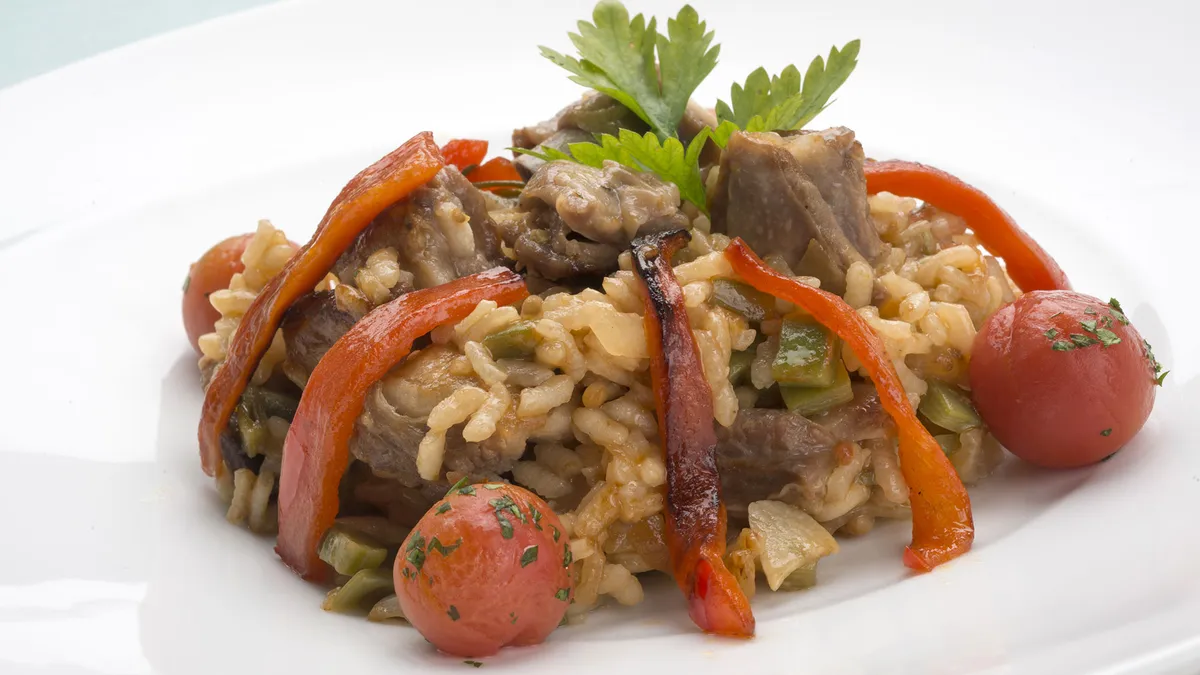 Receta de Karlos Arguiñano de arroz con cordero, judías verdes, tomate y pimiento, un plato equilibrado, económico y recomendado para todos.