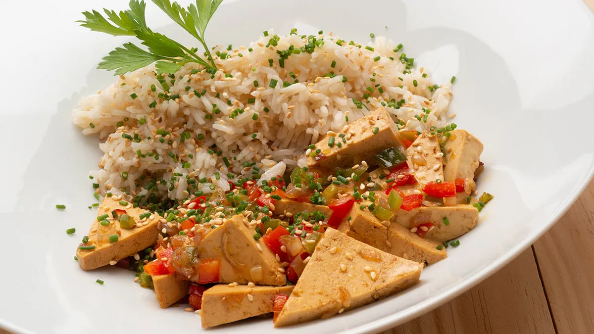 Arroz con verduras y tofu