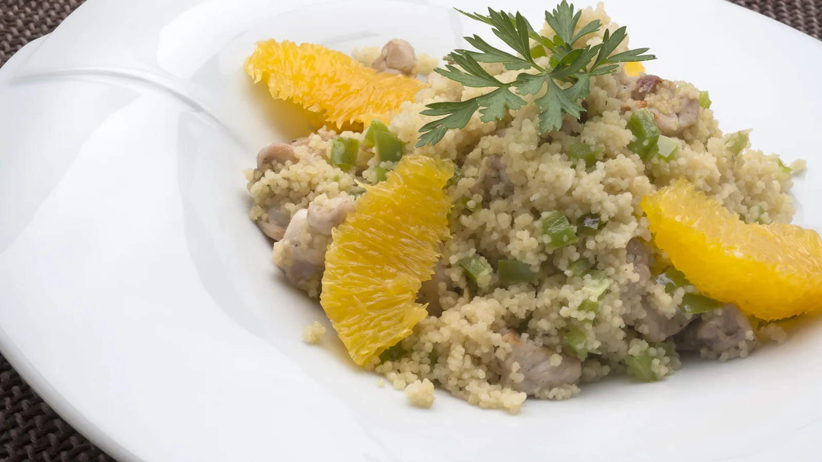 Cuscús con conejo y naranja