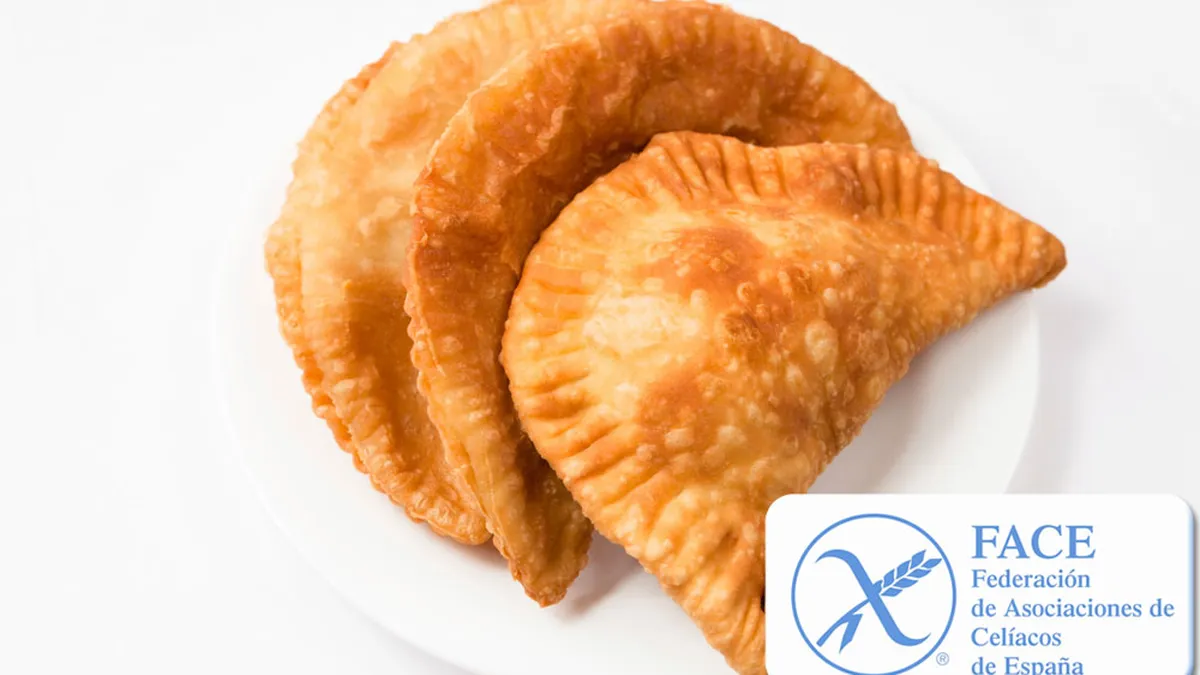 Una vez reposada la masa, se espolvorea harina sin gluten encima de la mesa, y se lamina con un rodillo, hasta quedar la masa bastante fina. Se coge un vaso, y se cortan círculos, y se rellena. Se pone con el dedo un poquito de agua en los bordes, se cierran y se aplastan con los dientes de un tenedor, por los bordes.