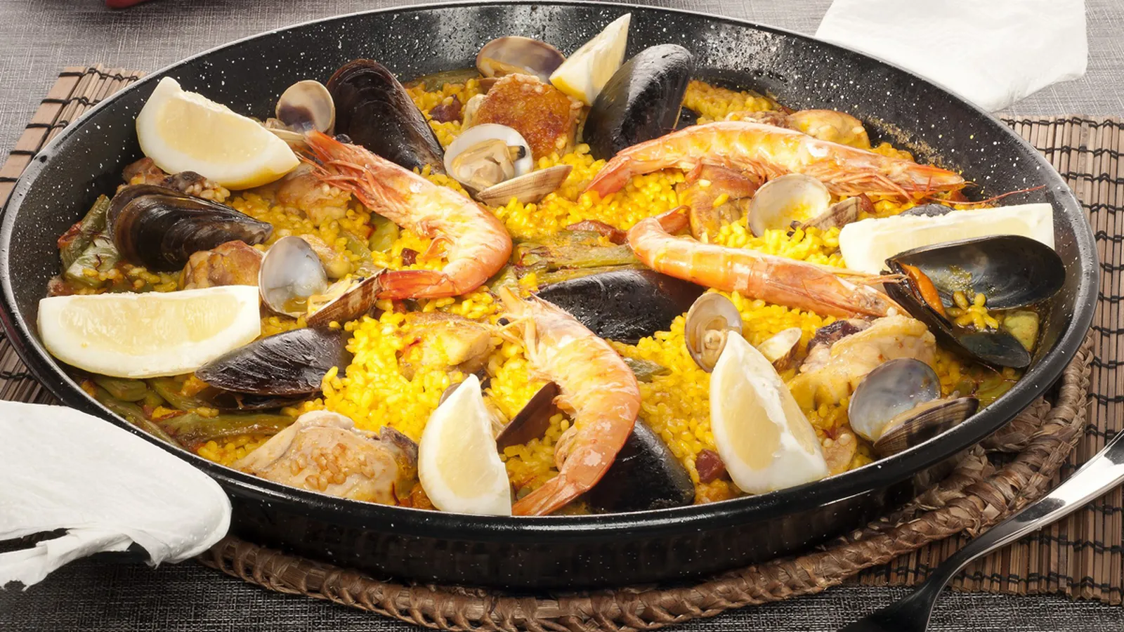 Aparta la paella del fuego, adórnala con el limón cortado en medias lunas y tápala con un paño limpio y seco. Deja reposar durante 10 minutos como mínimo. Sirve.