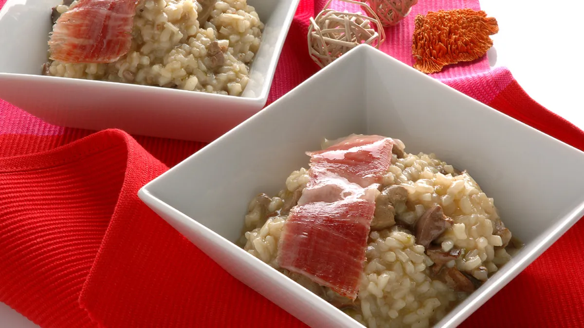 Risotto con higadillos de pollo y jamón