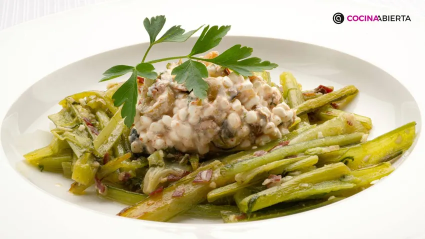 Borraja salteada con jamón y queso cottage, receta de Joseba Arguiñano