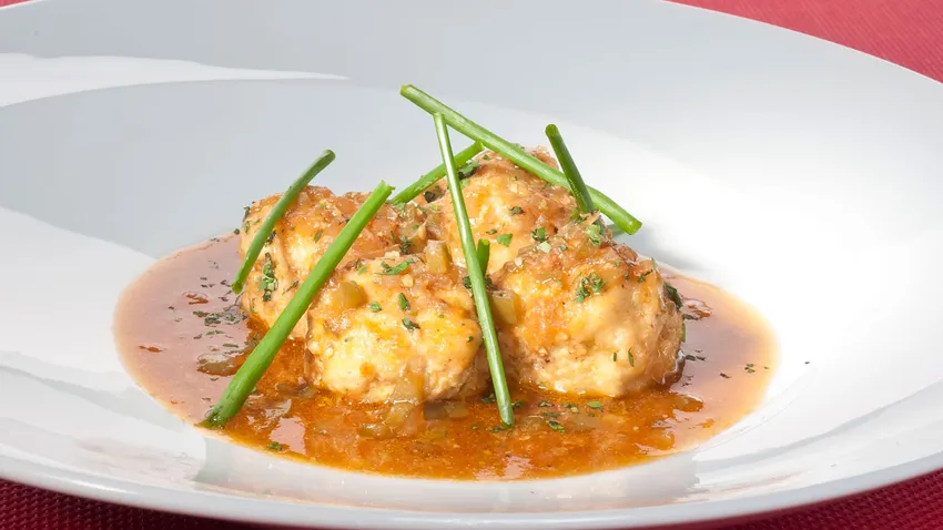 Receta de Bruno Oteiza de albóndigas de conejo en salsa de tomate, pimiento y cebolla.