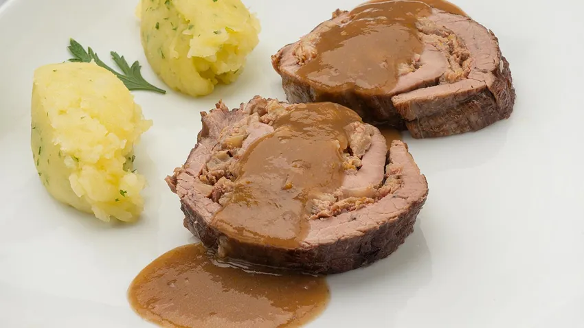 La aleta de ternera no es la carne más jugosa que conocemos pero con una rica salsa de acompañamiento y un buen relleno como es en el caso de esta receta te va a encantar.