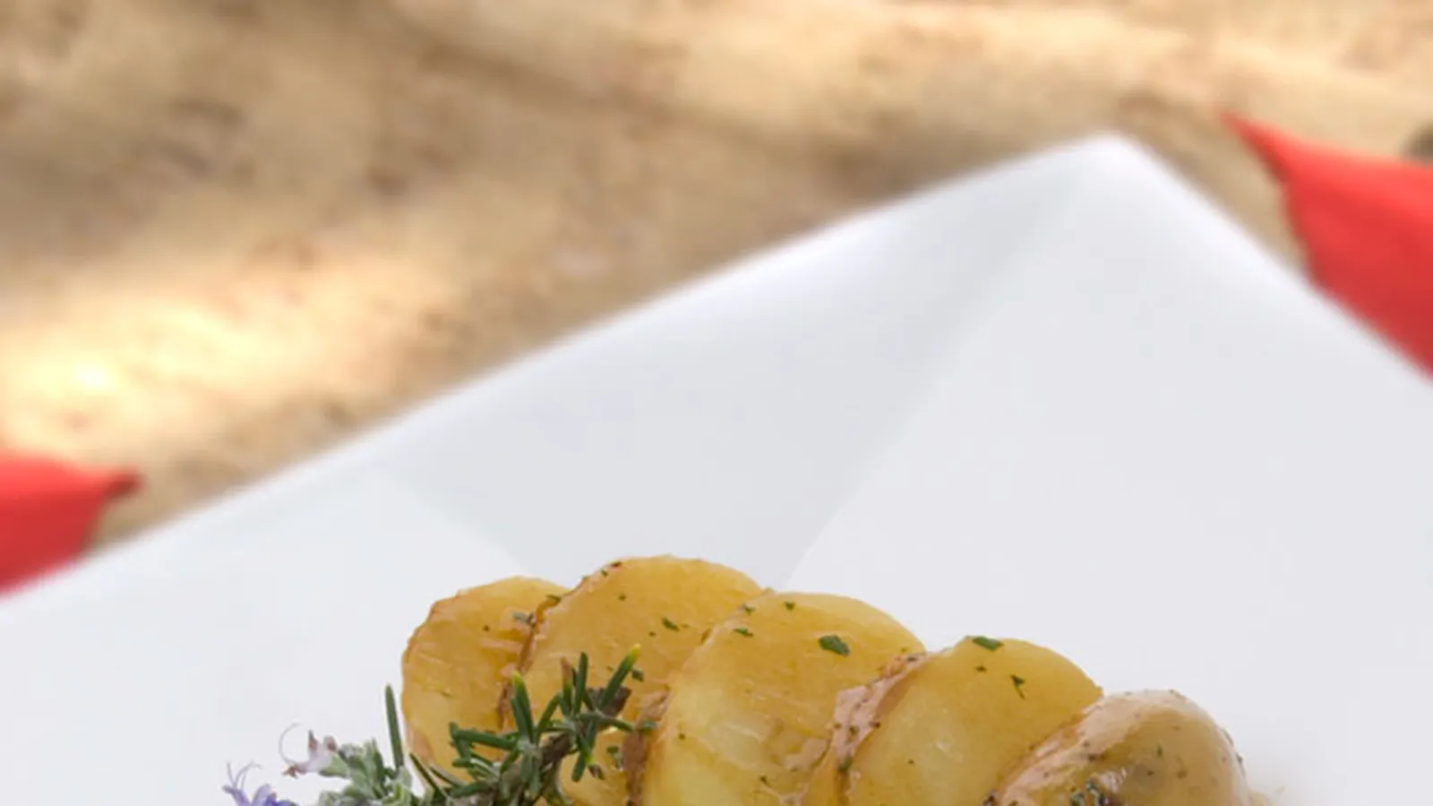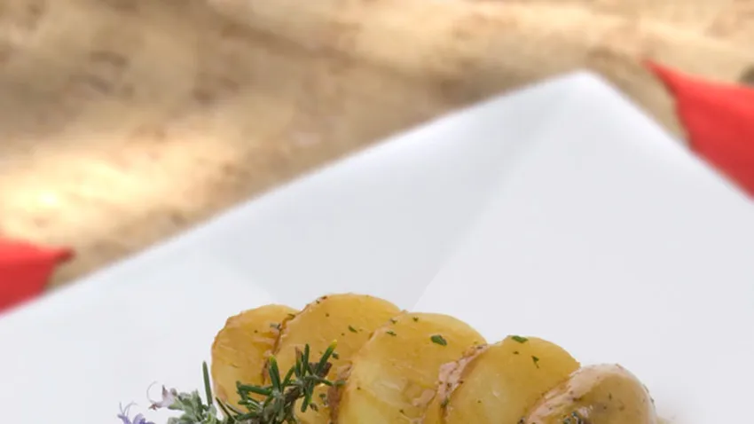 Receta de asado de costillar de ternasco con patatas asadas en su jugo. Deliciosa receta del cocinero Karlos Arguiñano.