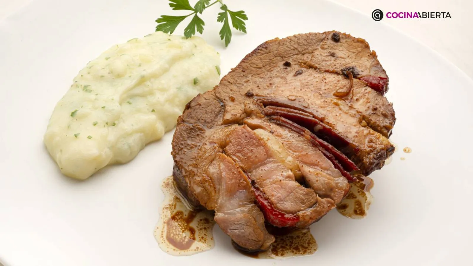 Podéis emplear otro tipo de carne como pechuga de pavo o lomo de ternera. Pero os aseguramos que la cabezada de cerdo queda muy tierna y riquísima. Por otro lado, el puré de patata lo hemos hecho sólo con patata cocida, leche y unas hojitas de perejil, pero podéis hacerlo también con aceite, mantequilla, queso o nata. ¡A vuestro gusto!