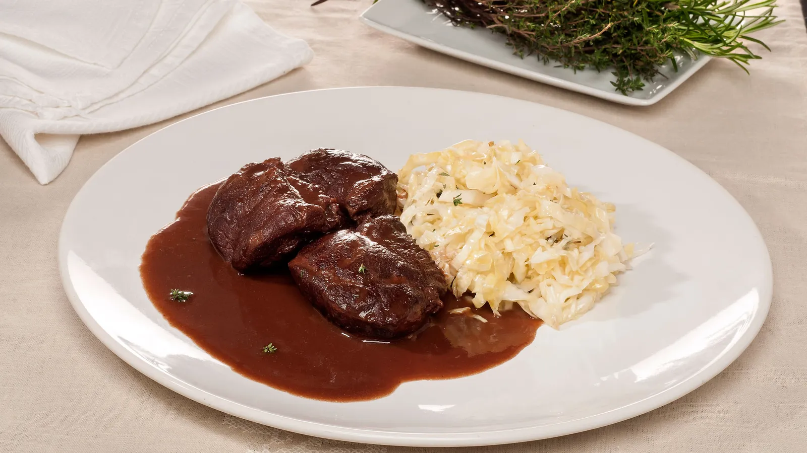 Sirve las carrilleras y chucrut y salsea a tu gusto.