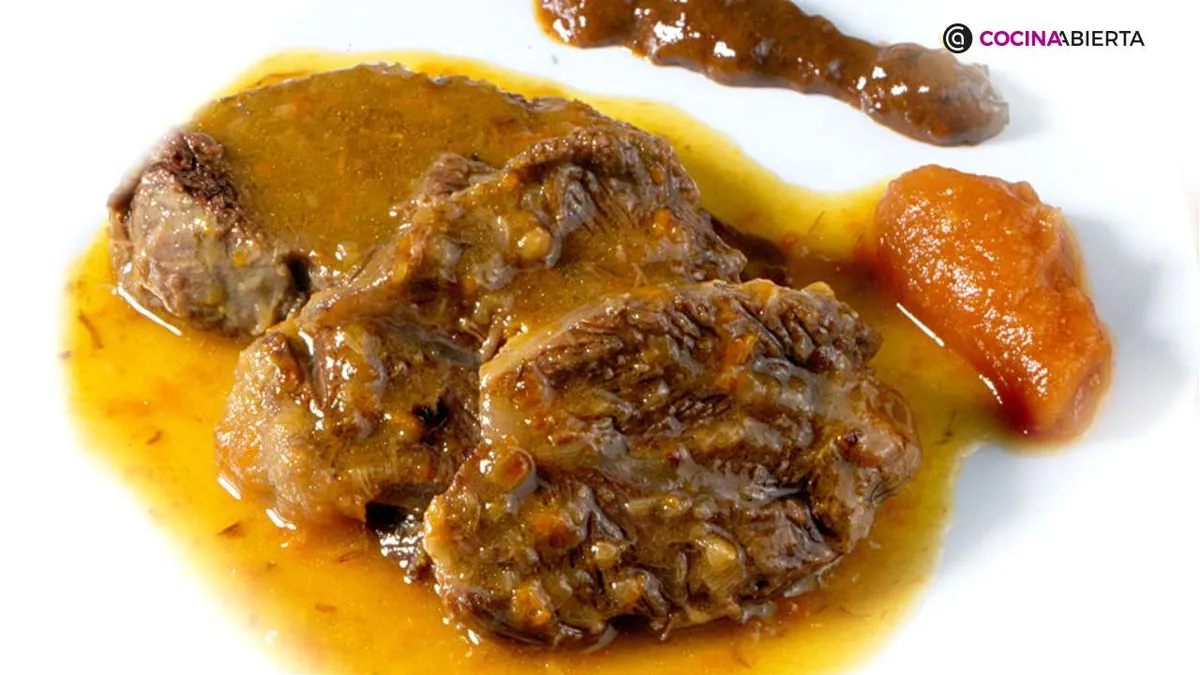 Receta de carrilleras de ternera con manzanas y ciruelas pasas, un guiso de carne con puré de manzana y ciruelas pasas y salsa de verduras al coñac, de Karlos Arguiñano.