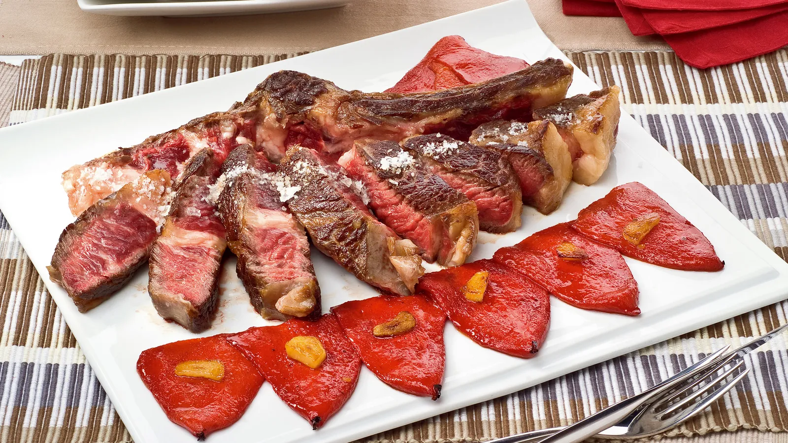 Chuletón con piquillos
